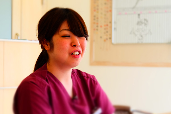 会見さん:最初の頃、アシスト側から患者さんが改善してゆく経過を見ていても、良かったな、嬉しいなと感じていましたけどですけど、患者さんを担当で持つようになって、自分が教えた歯の磨き方や歯石をちゃんと取って良くなった時に、本当に達成感というか仕事のやりがいを感じられますよね。